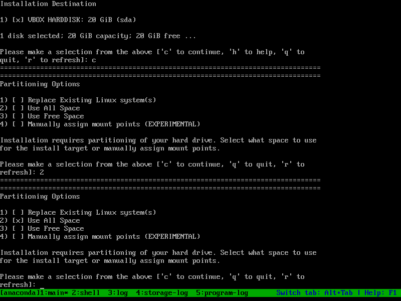 Since this installation is for VirtualBox, in this article I will write on how to install Linux Fedora 29 using command line. Use this link for the Fedora 29 Workstation Netinstall, and boot using the image.